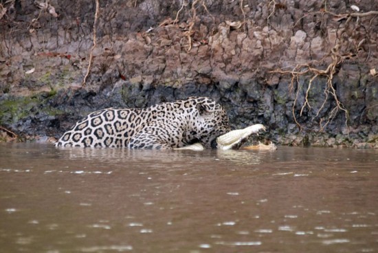 吉利斯表示,在她做導游的6年時間里,從未見過類似的場面。雖然美洲豹經常捕食凱門鱷,但通常是在密閉的森林中進行,人們通常只能聽見聲音卻看不到畫面。
